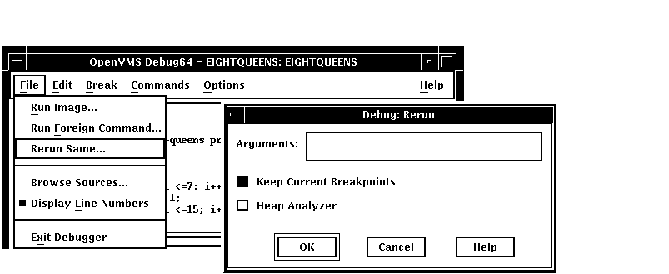When you rerun a program, it is in the same initial state as a program that is brought under debugger control as explained in Section 9.1, except for any saved breakpoints, tracepoints, or static watchpoints. The source display and current location pointer are updated accordingly.