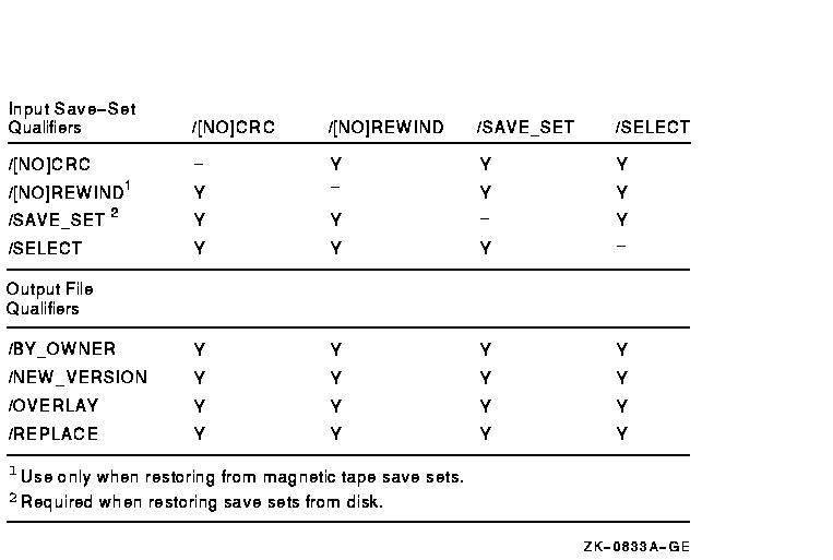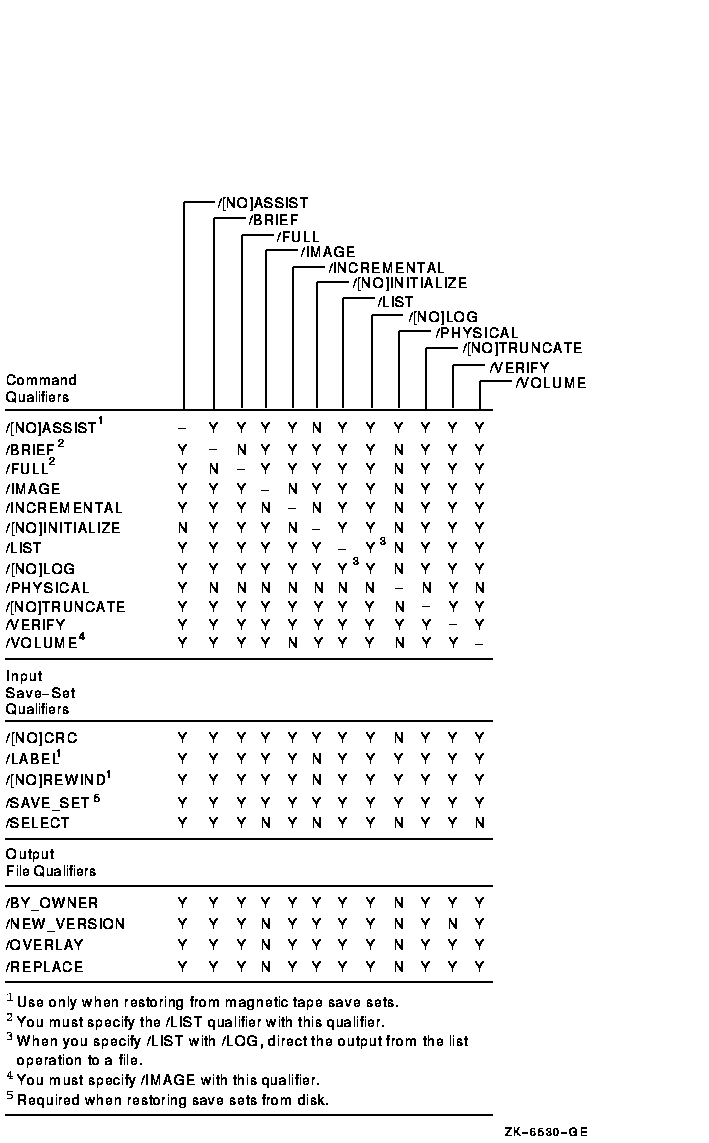 Figure G-4 Command Qualifiers Used in Restore Operations
