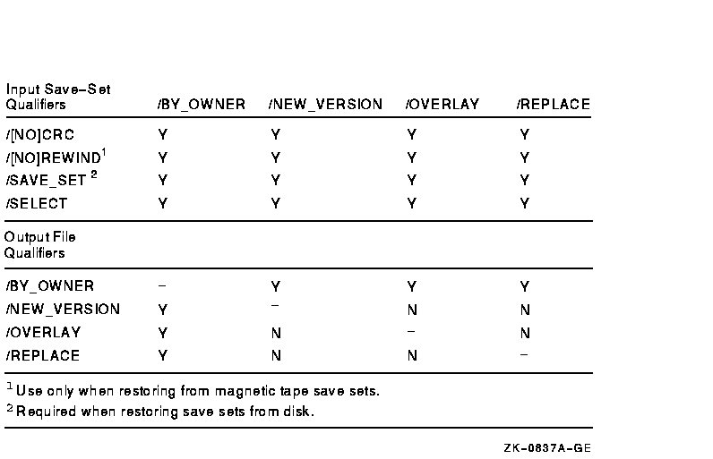 Figure G-6 Output File Qualifiers Used in Restore Operations