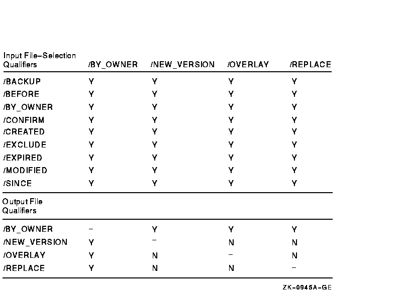 Figure G-7 Command Qualifiers Used in Copy Operations