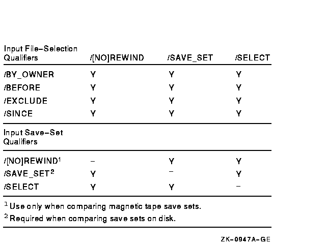 Figure G-12 Input Save-Set Qualifiers Used in Compare Operations