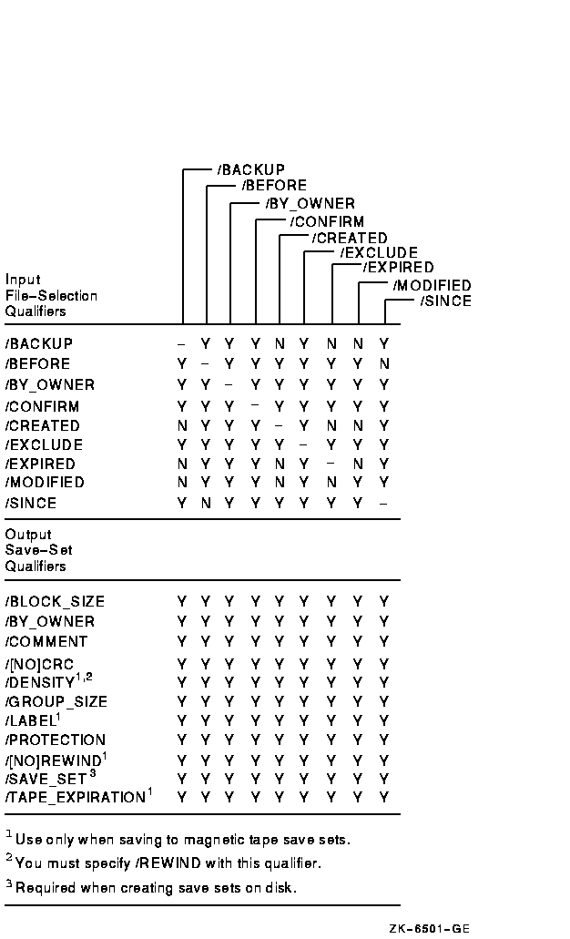 Figure G-3 Output Save-Set Qualifiers Used in Save Operations