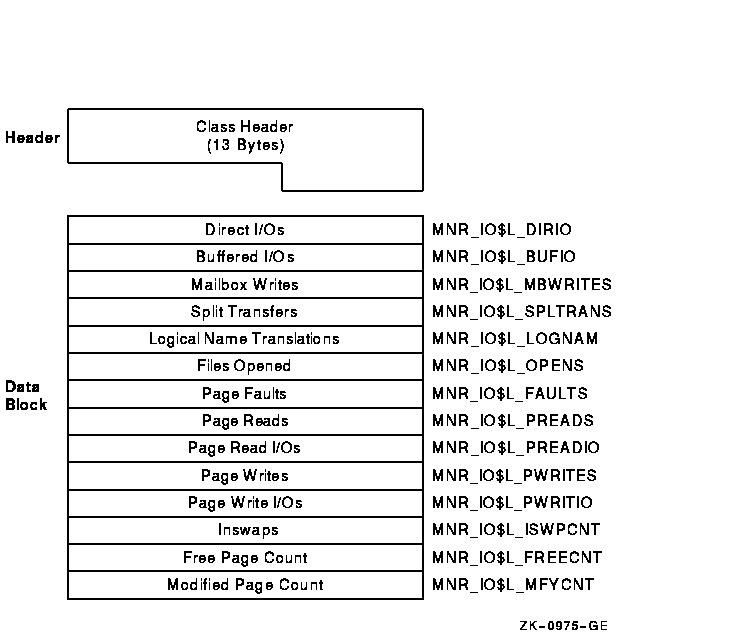 | Buffered I/Os | MNR_IO$L_BUFIO | Count of buffered I/O operations (longword,C) |