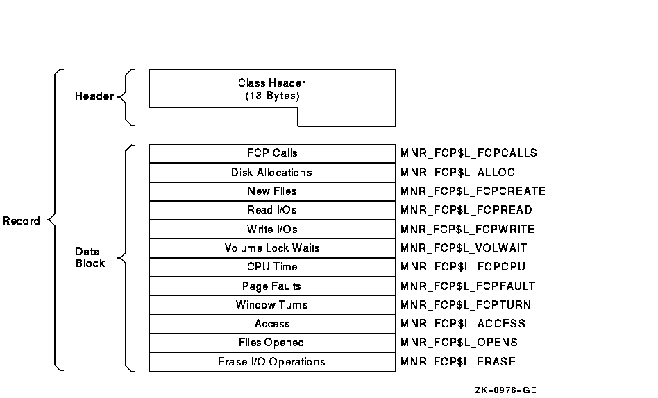 Figure H-12 illustrates the format of the FCP class record. Table H-12 describes the fields in the data block for the FCP class record.