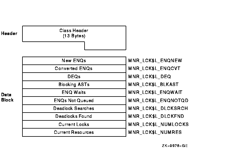 Figure H-15 illustrates the format of the LOCK class record. Table H-15 describes the fields in the data block for the LOCK class record.
