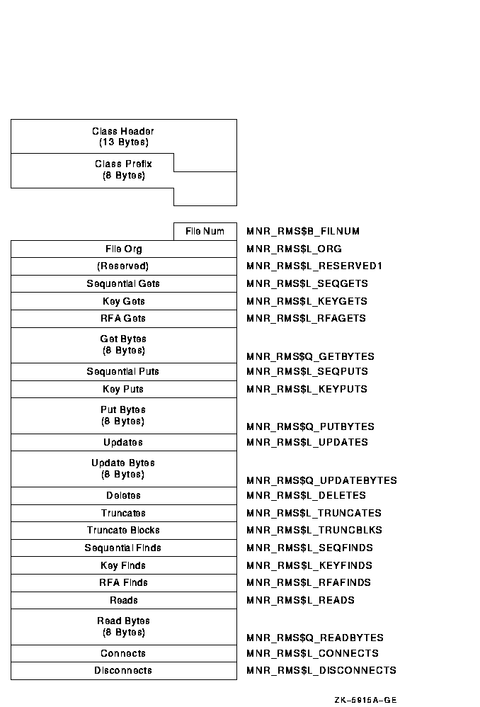 | Record Lock DEQs | MNR_RMS$L_RLCKDEQS | Count of record lock DEQs to the file (longword,C) |