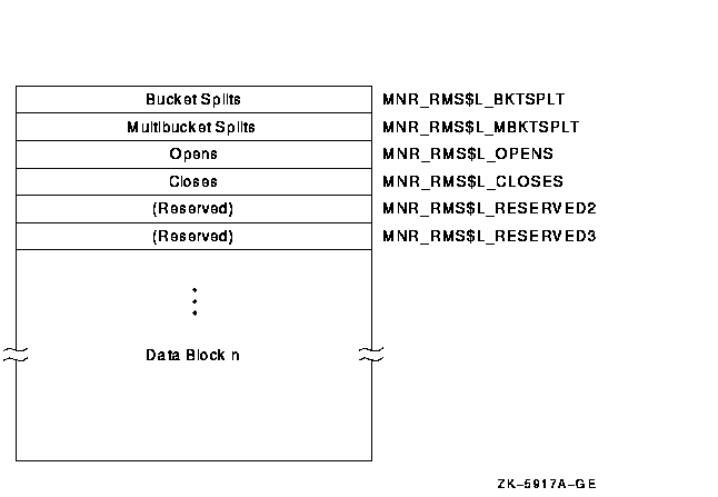 | Bucket Splits | MNR_RMS$L_BKTSPLT | Count of bucket splits for the file (longword,C) |