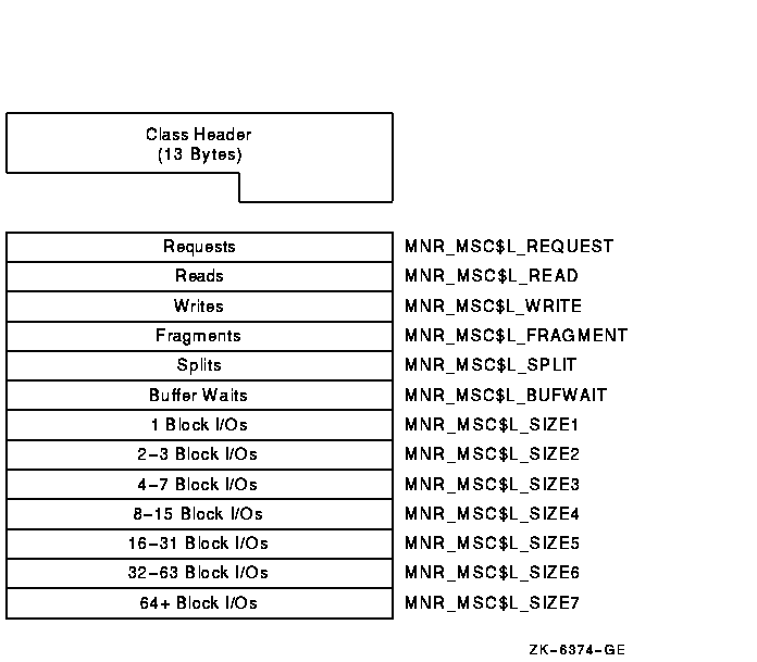 | Disk Allocations | MNR_FCP$L_ALLOC | Count of QIO requests that caused allocation of disk space (longword,C) |