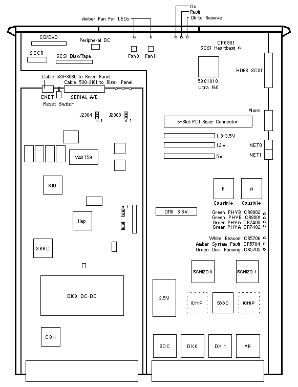 - The I/O Board and System Controller slot is labeled IB6_SSC1.