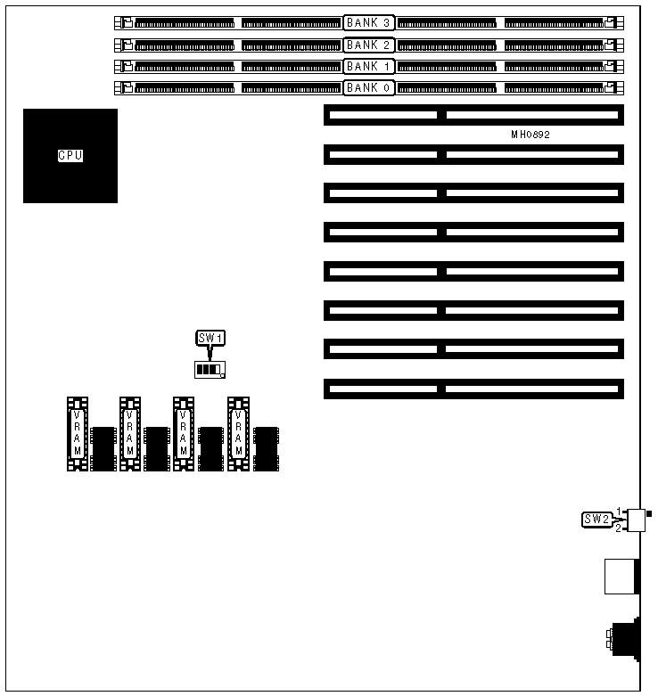 Note:SW1 and SW2 are located on the main board (shown on previous page). SW3 is on the I/O Adapter Board (shown below). |
