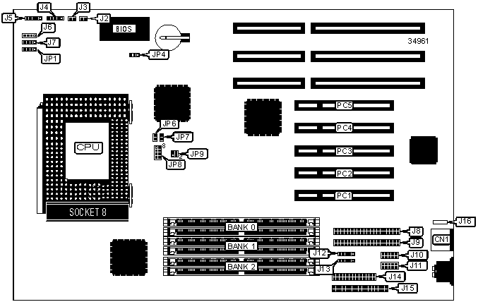 Note: Board accepts EDO memory. Board also accepts x 32 SIMMs. |