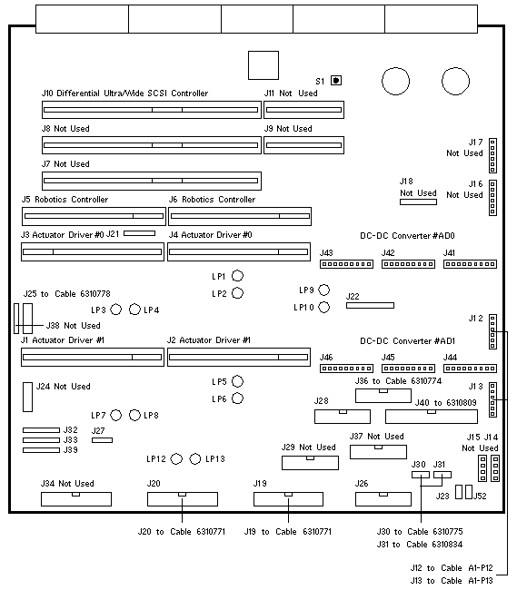 1. No part number is printed on the flexible cables to J21, J22, J27, J32, J33, and J39.