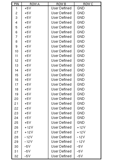 VMEbus SignalsThe VMEbus consists of signals on J1/P1 Row A, J1/P1 Row B, J1/P1 Row C, and J2/P2 Row B. P2 Bus SignalsThe Sun P2 Bus consists of signals on J2/P2 Row A, J2/P2 Row C, and J3/P3 Row B. VMEbus J1/P1 Pinouts VMEbus J2/P2 Pinouts VMEbus J3/P3 Pinouts Pressfit BackplanesPressfit Backplane production began in June 1987. Solderless contacts are machine pressed into plated-through holes on printed circuit boards. Component leads installed into the solderless contacts are held in place by a tapered entry, multi-finger contact design. 501-1439, 501-1598, and 501-1832 12-Slot BackplanesThe Sun P2 bus connects cardcage Slots 1 through 7 to each other, and cardcage Slots 10, 11, and 12 to each other. In addition to the Sun P2 bus and the VMEbus, the 12-slot backplane has a private Internal bus that connects Slots 1, 2, and 3 as shown below. J1/P1, Rows A, B, and C, on Slots 1, 2, and 3 are not connected to the VMEbus. Boards that use the VMEbus cannot be used in Slots 1, 2, or 3. J2/P2, Row B, is connected between Slots 1 through 7. The 501-1439 Backplane terminates J2/P2, Row C, Pins 75 and 96 with a 40.2W resistor and a 47pf capacitor. The 501-1598 and 501-1832 Backplanes terminate J2/P2, Row C, Pins 75 and 96 with a 200W resistor. Termination is jumper selectable. The Sun 4400 CPU is not supported in the 501-1439 Backplane. The function of the backplane jumpers is shown below. Backplane Sun P2 or Private Bus ConnectionBackplane slots that share an adjacent P2 bus are marked with the same letter in the charts below. | ||||||||||||