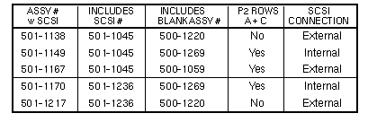6. Sun-2 SCSI Host Adapter, 501-1167, has P2 bus connections and an external cable assembly. Do not substitute a 501-1236 Sun-3 SCSI for a 501-1045 Sun-2 SCSI in this adapter assembly.