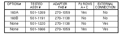 3. Sun 3x2 Adapter, 501-1191, Option 160B, is not connected to J2 Rows A and C. There is no external connector.