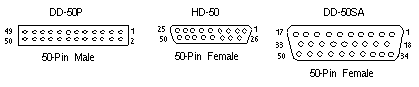 2. On HD50 to HD68 cables, Pins 1, 2, 3, 4, 5, 17, 18, 31, 32, 33, 34, 35, 36, 37, 38, 39, 51, 65, 66, 67, and 68 are open.
