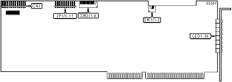 Note: A total of 255 base address settings are available. The switches are a binary representation of the decimal memory addresses. SW1/8 is the Most Significant Bit and switch SW1/1 is the Least Significant Bit. The switches have the following decimal values: SW1/8=32768, SW1/7=16384, SW1/6=8192, SW1/5=4096, SW1/4=2048, SW1/3=1024, SW1/2=512, SW1/1=256. Turn off the switches and add the values of the switches to obtain the correct memory address. (Off=1, On=0) | |||||||