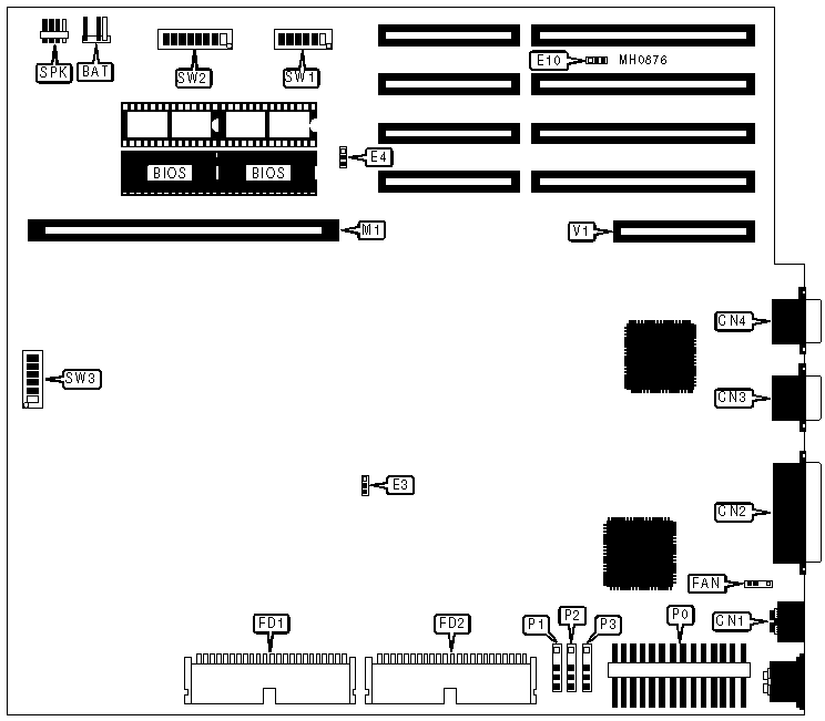 VGA feature connector, floppy drive interface, IDE interface, proprietary system memory card slot, parallel port, serial port, VGA port, bus mouse