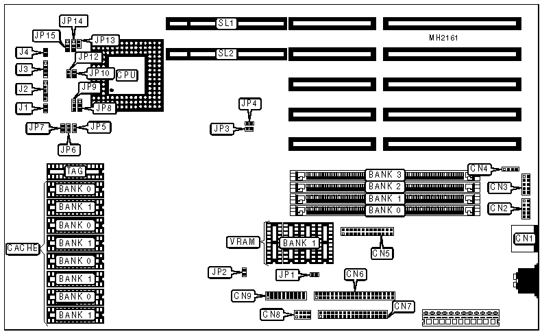 32-bit VESA local bus slots (2), floppy drive interface, IDE interface, parallel port, PS/2 mouse port, serial ports (2), VGA feature connector, VGA port