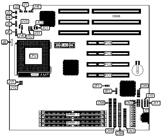 Note: Board accepts EDO memory. Board also accepts x 32 SIMMs.