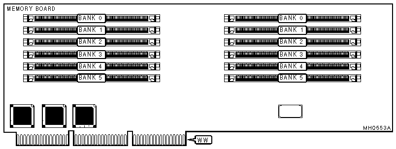 Note:Table is shown for the easiest possible DRAM configuration. You can configure any of the six banks on one memory board with any type and combination of 36 bit SIMMs as long as the same type of SIMM populates a bank.