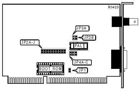 Note:On some systems the data bus timing is not truly IBM PC/AT compatible. If the card does not initialize or you receive an "Error Reading Address PROM" message, compatibility mode should be enabled (JP1 closed). | ||