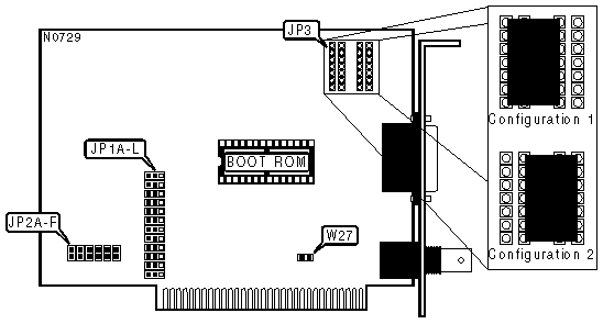 Note:This jumper only applies when the NIC is installed in an IBM PC/XT. | |