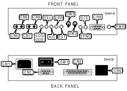 AC power connector, serial ports via 9-pin connector (2), DTE port via 25 pin connector, network interface via RJ-48 connector line jack - transmit/receive, monitor jack - transmit/receive |