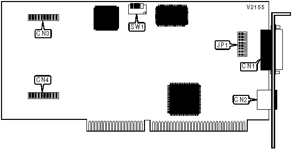 Note: CN1 is a 3-row DB-26 connector. Standard port configurations are provided by included adaptor cables.CN2 is a 4-pin Mini-DIN connector. A standard RJ-45 jack is provided by an included adaptor cable. | |||